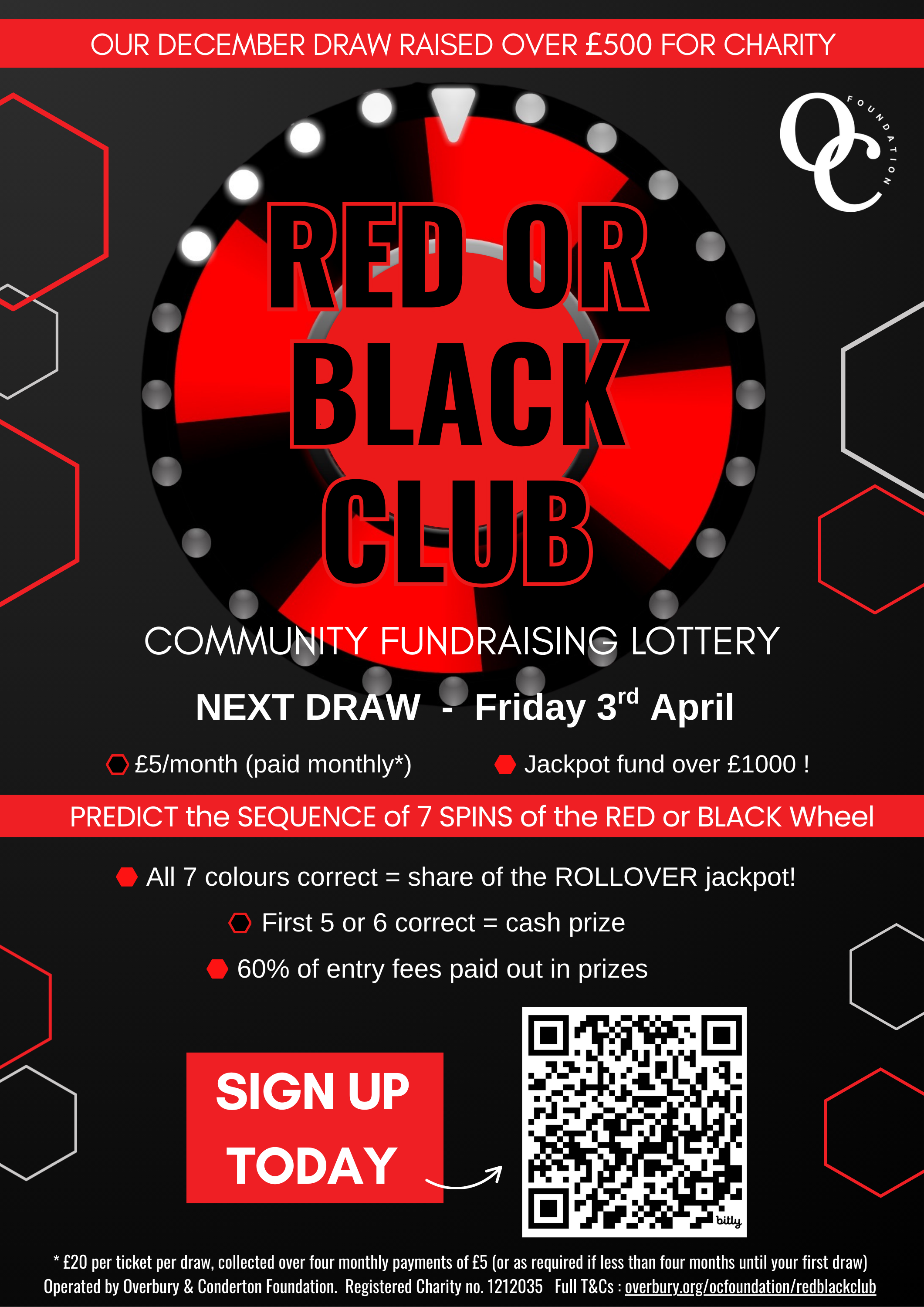 3.6. The results of each draw will be recorded and widely published on social media channels and on the Overbury & Conderton Foundation web page for the Red or Black Club.